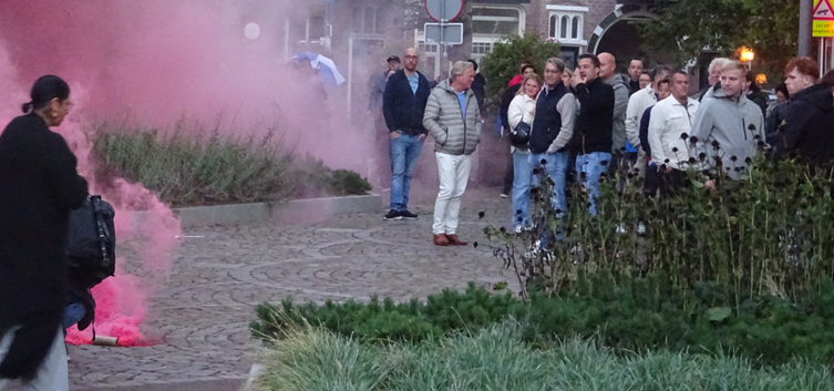 Al ver voor de vergadering was er bij de kerk het nodige tumult. De buiten gehouden meute zocht deels een aanleiding om te rellen, stak het nodige vuurwerk af en scandeerde “AZC, weg ermee”. Tegenstanders waren herkenbaar aan de Nederlandse vlaggetjes
